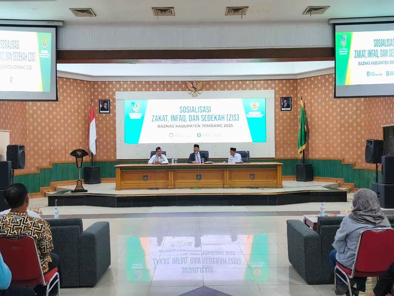 Jombang - Badan Amil Zakat Nasional (Baznas) Kabupaten Jombang menggelar Sosialisasi Zakat, Infak, dan Sedekah (ZIS) sebagai langkah memperkuat sinergi dengan organisasi perangkat daerah (OPD) dan badan usaha milik daerah (BUMD). Kegiatan yang berlangsung di Ruang Bung Tomo, Kantor Pemkab Jombang, pada Jumat (7/11/2025) ini bertujuan mengoptimalkan penghimpunan dana ZIS di lingkungan pemerintah daerah Kabupaten Jombang.